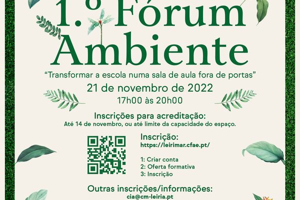 O 1º Fórum Ambiente - "Transformar a escola numa sala de aula fora de portas!" realiza-se dia 21 de novembro, entre as 17:00 e ...26 Out 2022 -