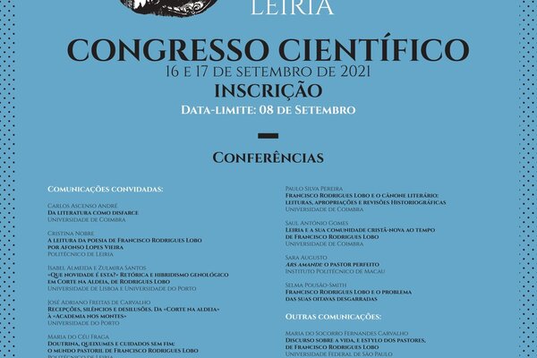 Encontram-se abertas as inscrições para o Congresso Científico Francisco Rodrigues Lobo, evento que irá acontecer em Leiria ...16 Ago 2021 -