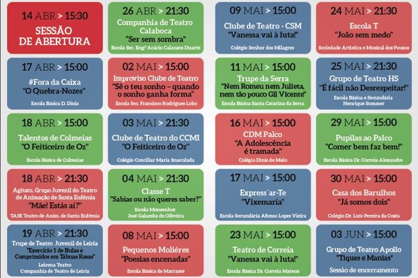 Tem hoje início a XXIV Edição Festival de Teatro Juvenil de Leiria que junta 15 agrupamentos e escolas da rede pública e ...17 Abr 2018 -