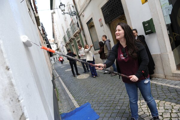 Alunos do Instituto Politécnico limpam muros e paredes vandalizados em Leiria