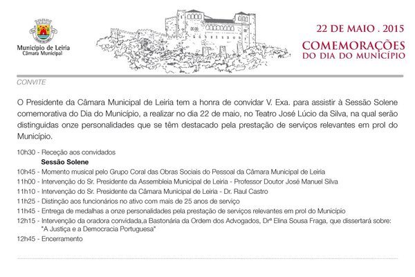 Na sexta feira 22 de Maio Leiria comemora o dia do Município