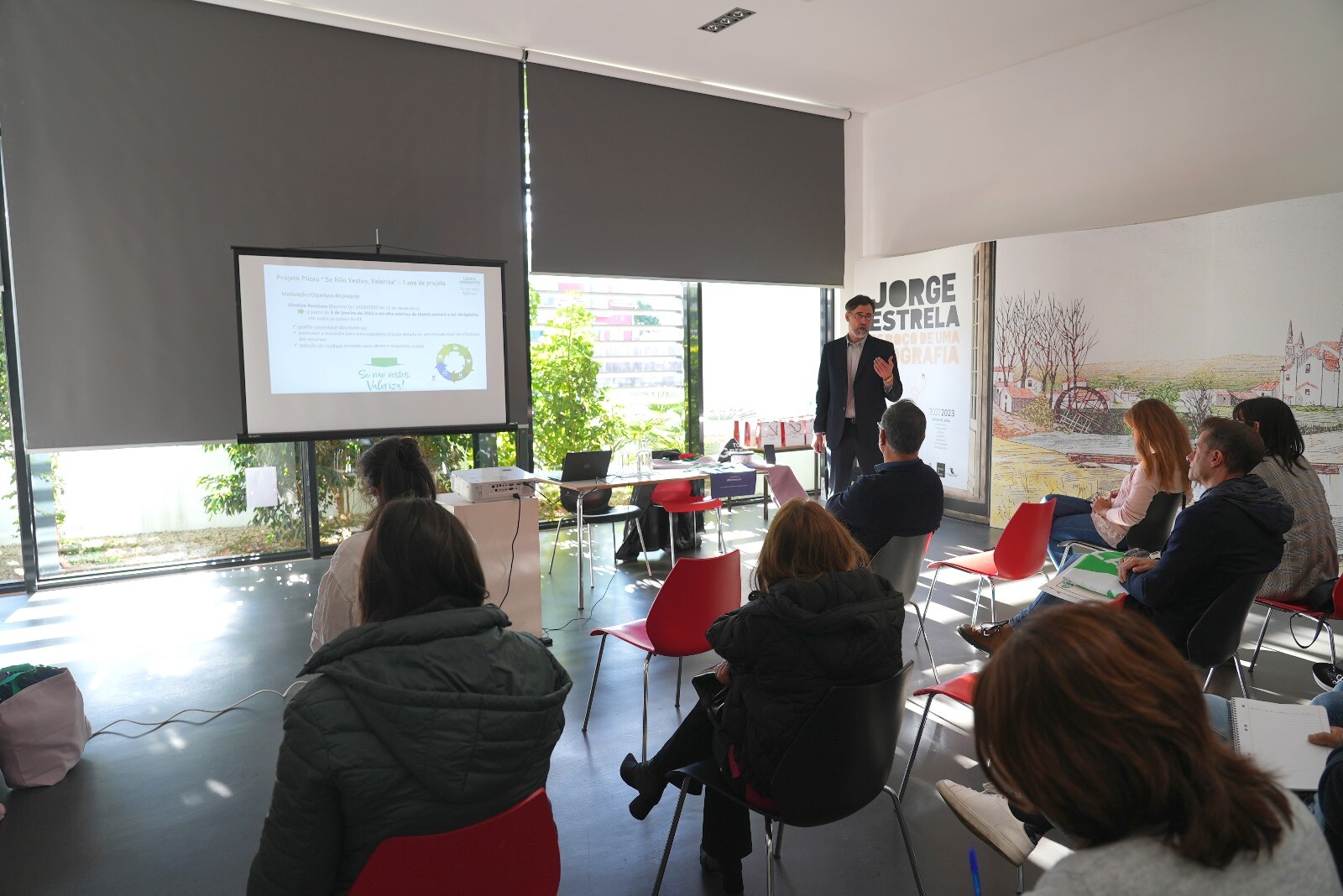 A sessão de apresentação dos resultados obtidos pelo Município de Leiria no âmbito do Projeto Piloto “Se não vestes Valoriza!” 2022/2023, decorreu na tarde desta quarta-feira, dia 22 de novembro, no Centro de Interpretação Ambiental – CIA, e contou com a participação do vereador do Ambiente, Luís Lopes, e do representante da ToBeGreen, António Dinis, além de entidades do concelho, participantes neste projeto.