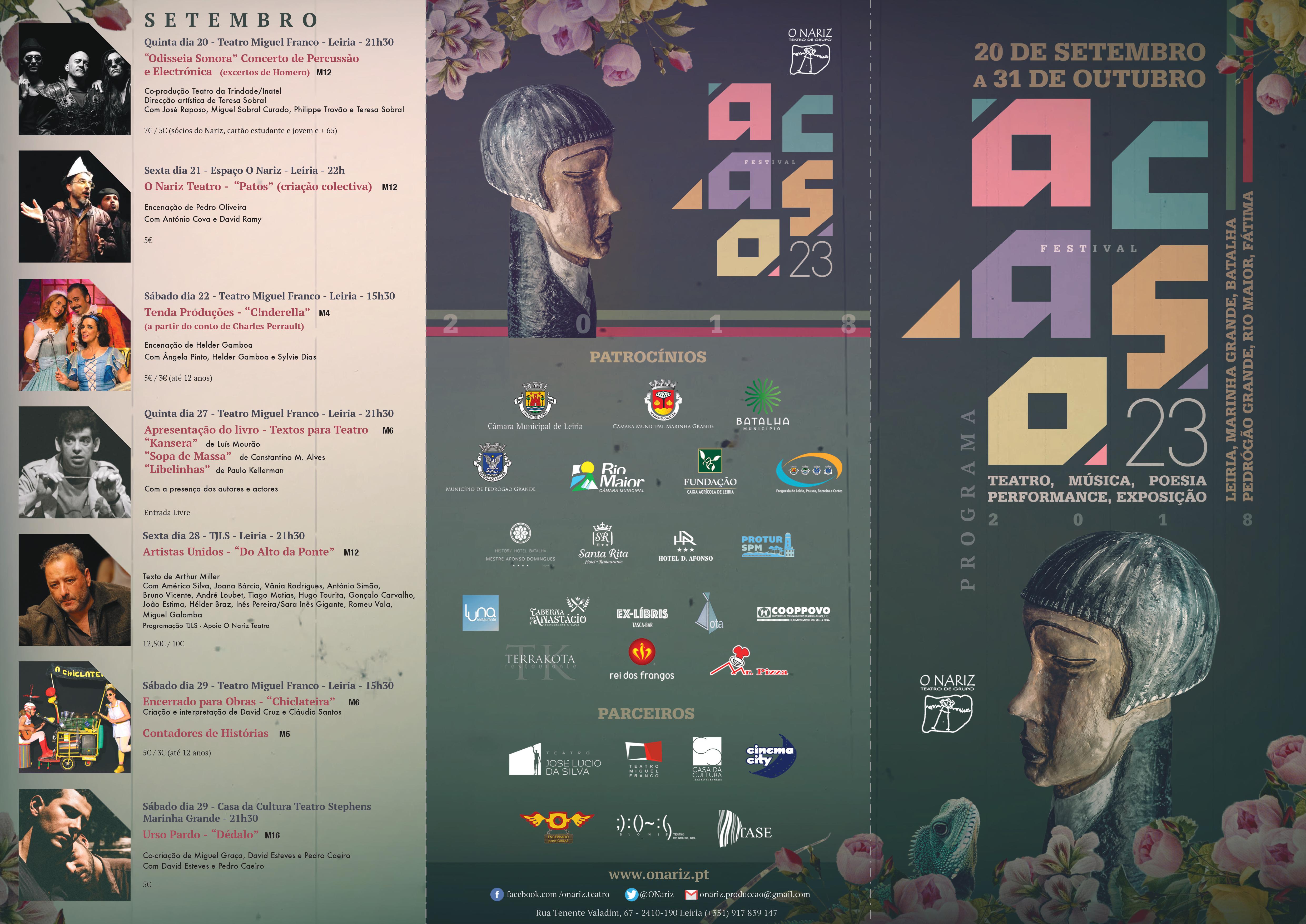 O 23º Acaso é já um marco cultural de referência para a região centro. Em Leiria, o público vai, com certeza, disfrutar de um leque de espetáculos de grande qualidade. (programa anexo)