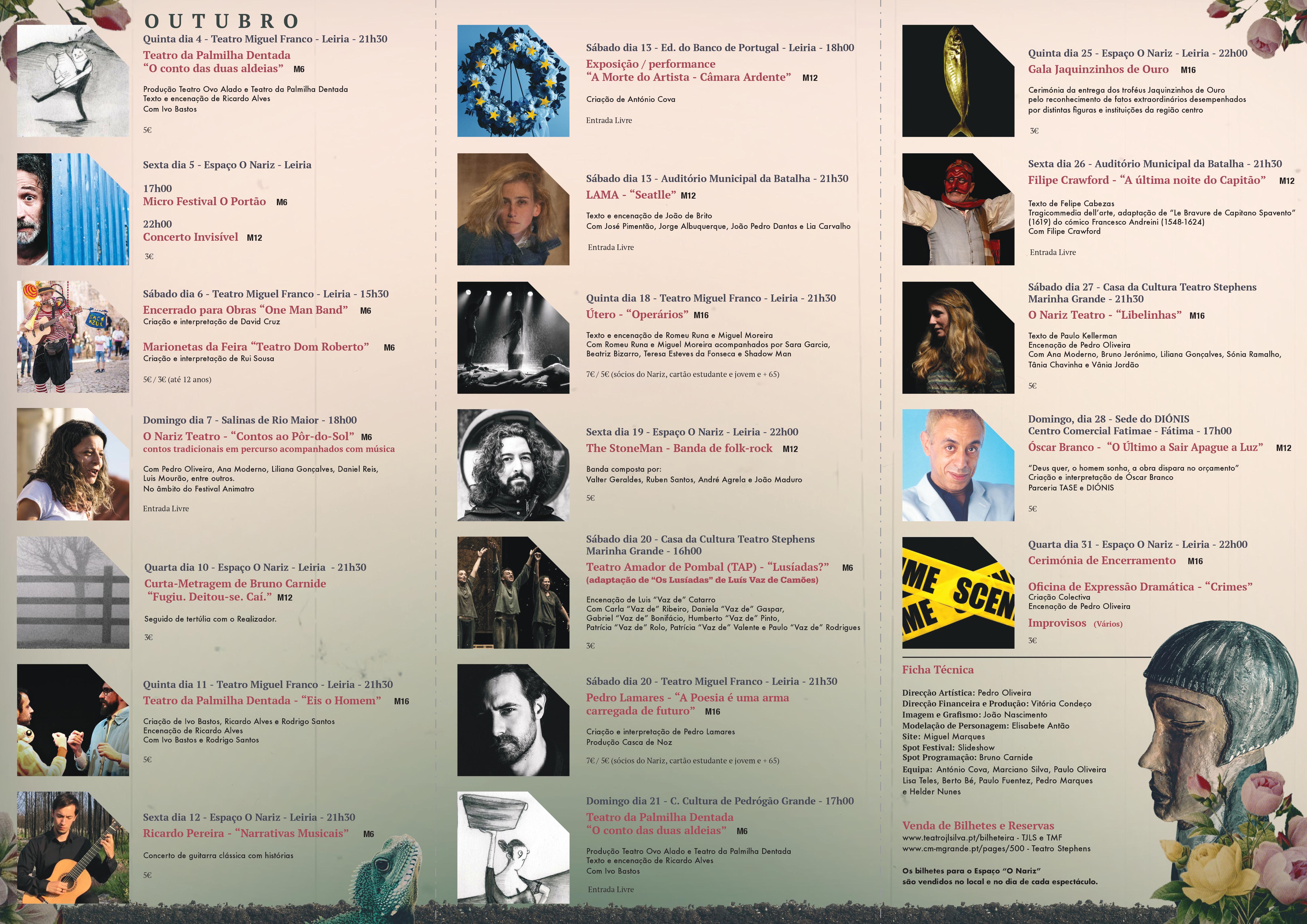 Organizado pelo ‘O Nariz – Teatro de Grupo’, em Leiria, os espetáculos decorrem no Teatro José Lúcio da Silva, Teatro Miguel, edifício Banco de Portugal e Espaço O Nariz, na rua Tenente Valadim.