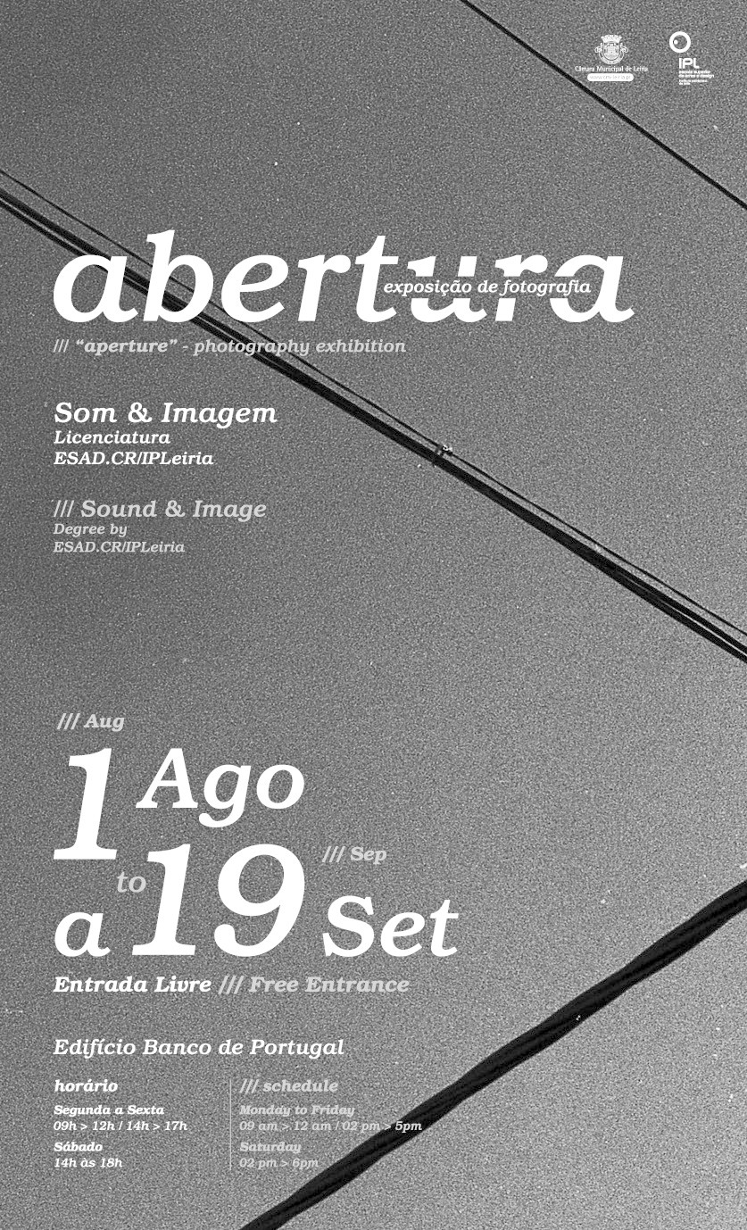 De 1 de Agosto a 19 de Setembro de 2014, estará patente no Edifício do Banco de Portugal, uma exposição de fotografia de alunos do curso de Som e Imagem da Escola Superior de Arte e Design das Caldas da Rainha (ESAD.CR) do Instituto Politécnico de Leiria, intitulada de “Abertura”.