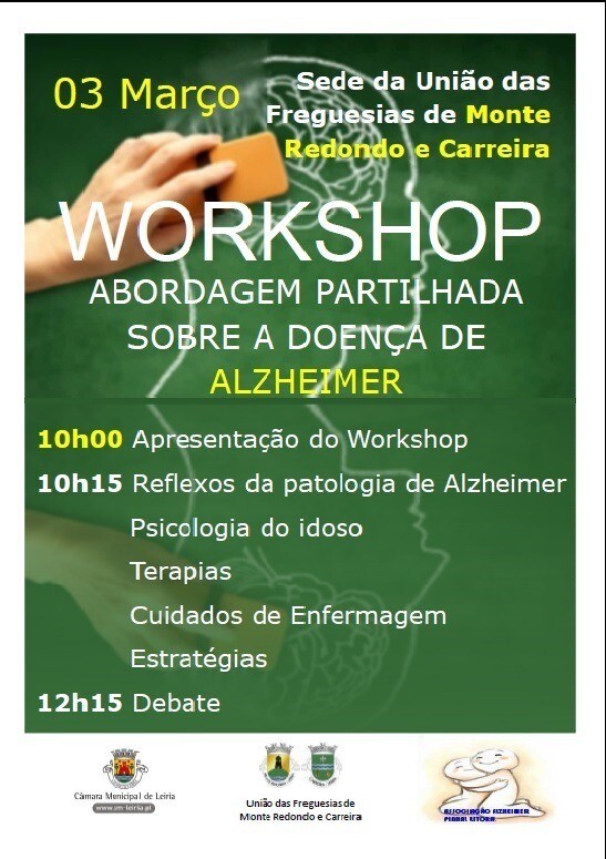 O Workshop terá lugar na sede da União de Freguesias de Monte Redondo e Carreira, possui entrada livre e serão abordados temas como os reflexos da patologia de Alzheimer, a psicologia do idoso, terapias, cuidados de enfermagem e estratégias.