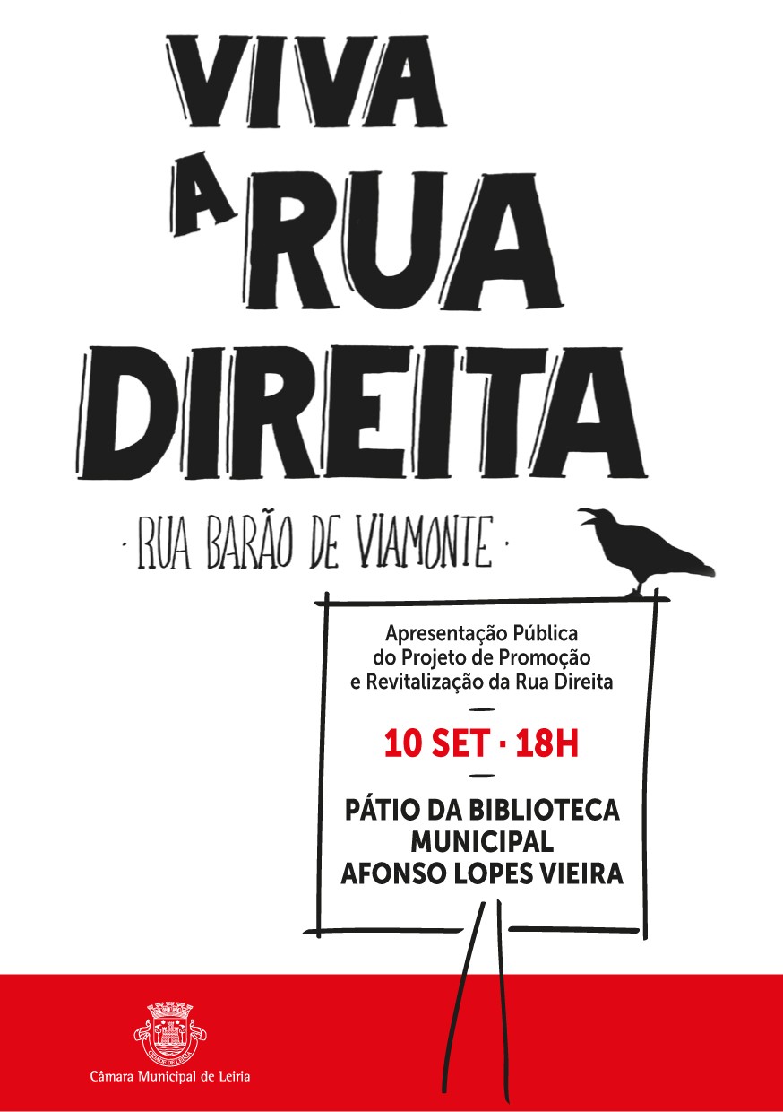 A apresentação oficial do projeto Viva a Rua Direita vai decorrer no próximo dia 10 de setembro, quinta-feira, pelas 18h00, no pátio da Biblioteca Municipal Afonso Lopes Vieira, em Leiria.
