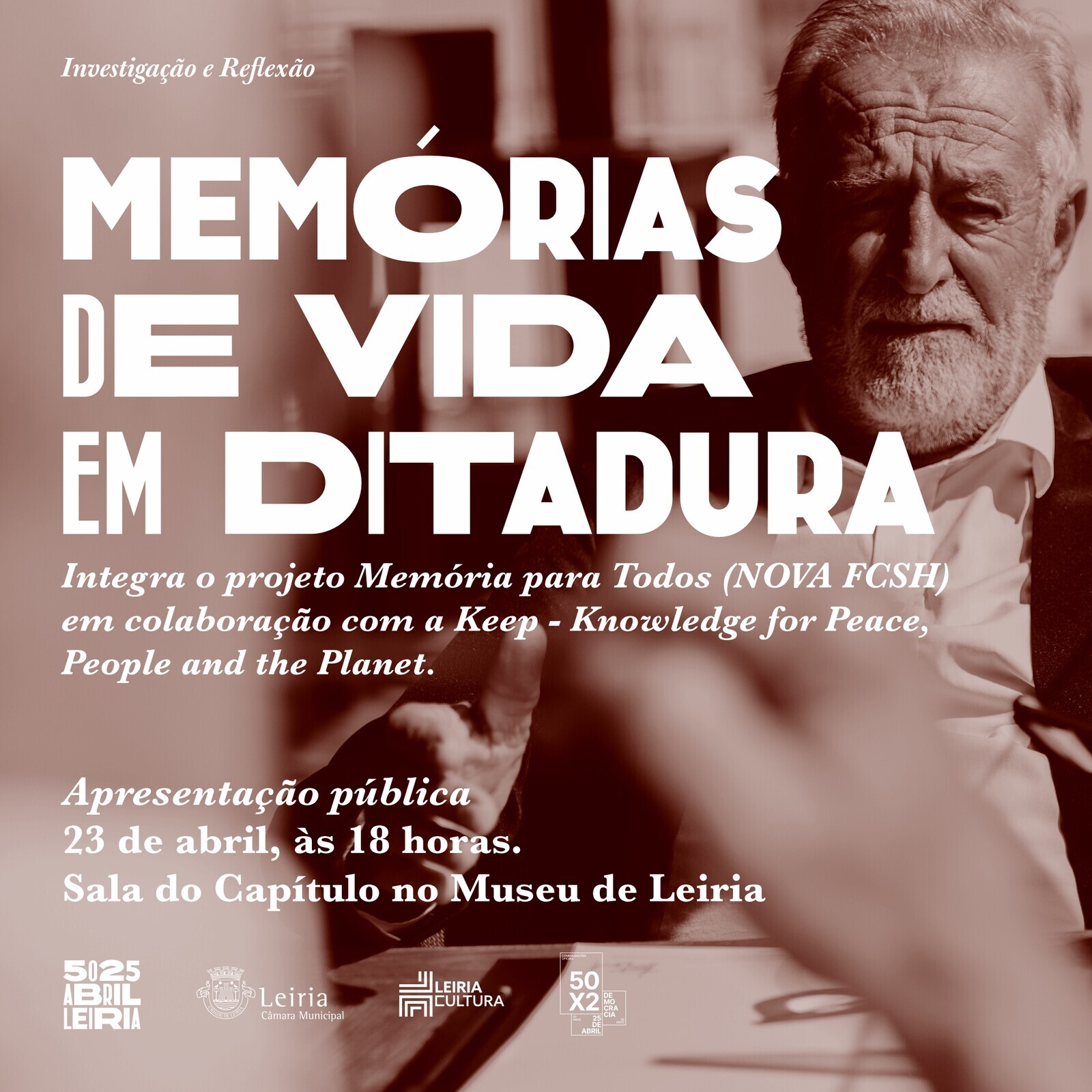 A apresentação pública do projeto “Memórias de Vida em Ditadura” realiza-se no dia 23 de abril, às 18:00, na Sala do Capítulo, no Museu de Leiria.