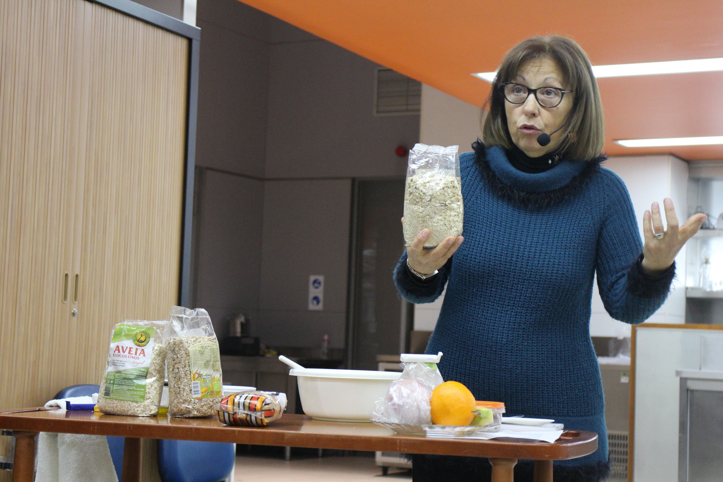 A vertente prática da sessão de formação ficou a cargo de Olívia Santos, que, além de fornecer informação sobre alimentação saudável, fez demonstrações de como preparar refeições saudáveis.