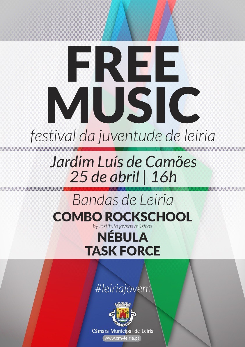 O Município de Leiria promove na tarde do dia 25 de abril, no Jardim Luís de Camões em Leiria, “Free Music - festival da juventude de Leiria", no qual atuarão três bandas juvenis: "Combo Rock School - Instituto Jovens Músicos”, “Nébula” e “Task Force”.