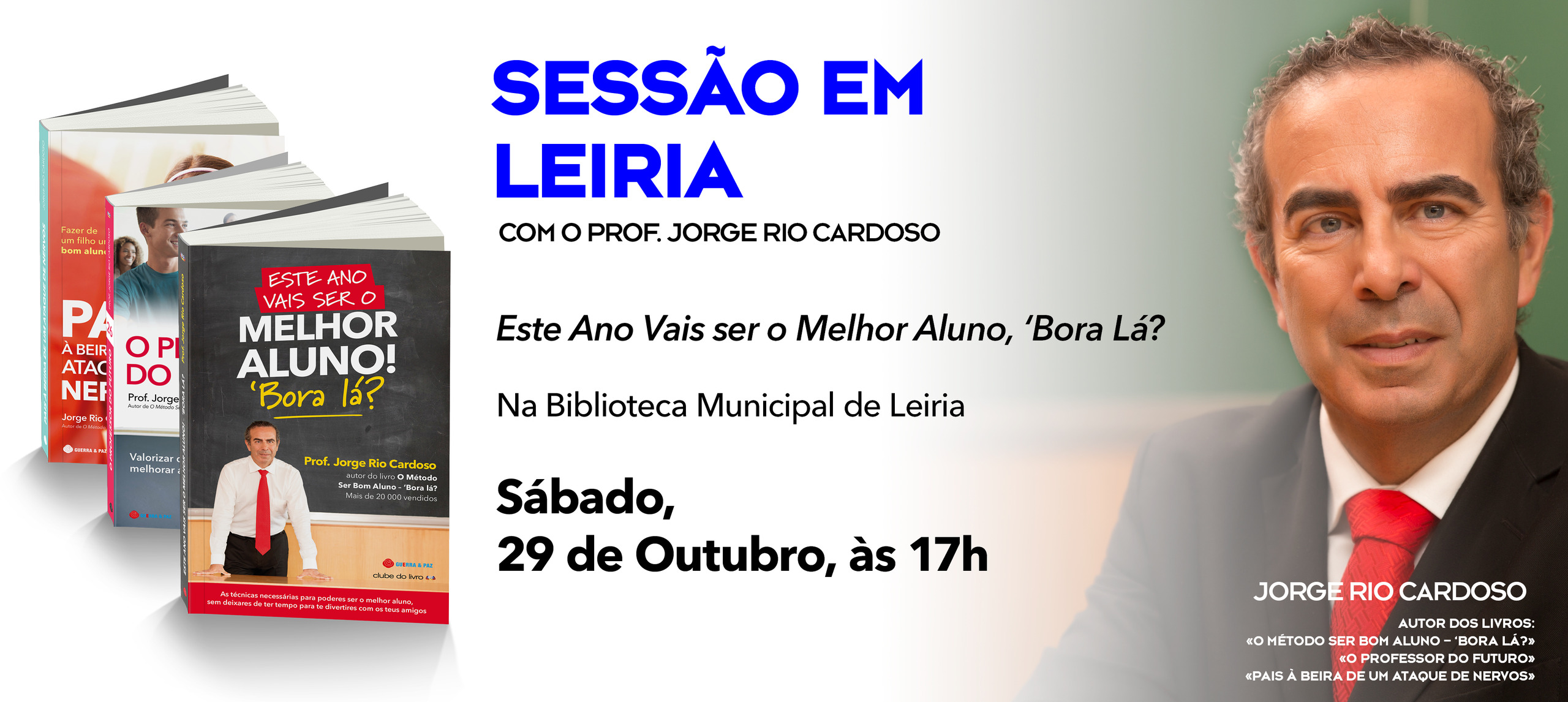 “Este ano vais ser o melhor aluno! Bora lá?” é o título do livro de Jorge Rio Cardoso, que vai ser apresentado dia 29 de outubro (sábado), às 17:00na Biblioteca Municipal Afonso Lopes Vieira, em Leiria, uma sessão dirigida a pais e encarregados de educação, professores e comunidade em geral.