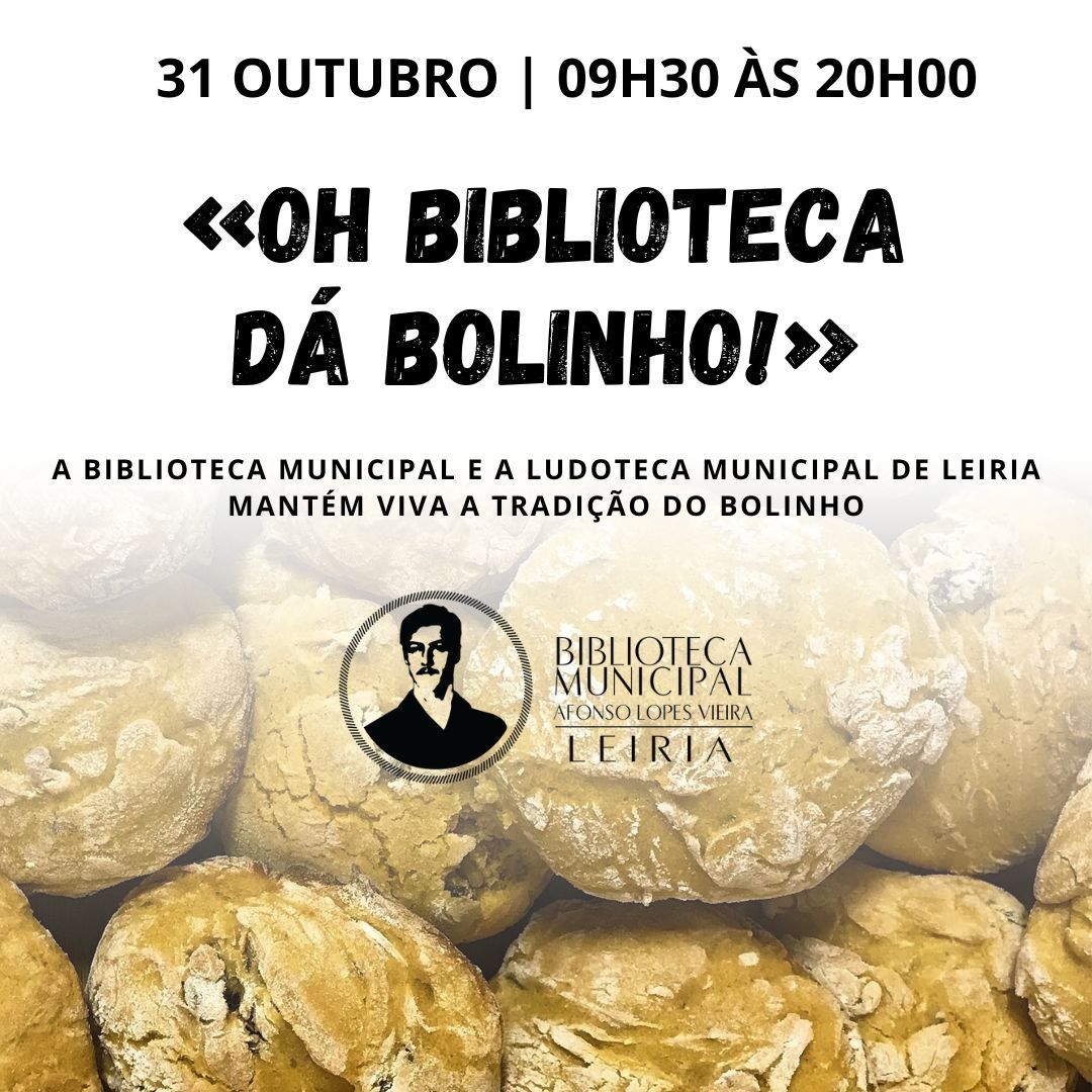 No dia 31 de outubro, quinta-feira, a Biblioteca Municipal Afonso Lopes Vieira convida todos os utilizadores a visitarem a Biblioteca e a Ludoteca Municipais e receberem o tradicional “Bolinho”!