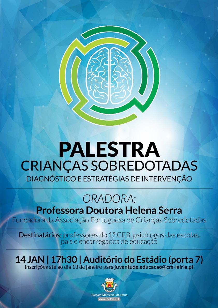 A Câmara Municipal de Leiria promove no dia 14 de janeiro a palestra “Crianças sobredotadas – Diagnóstico e estratégias de intervenção”.