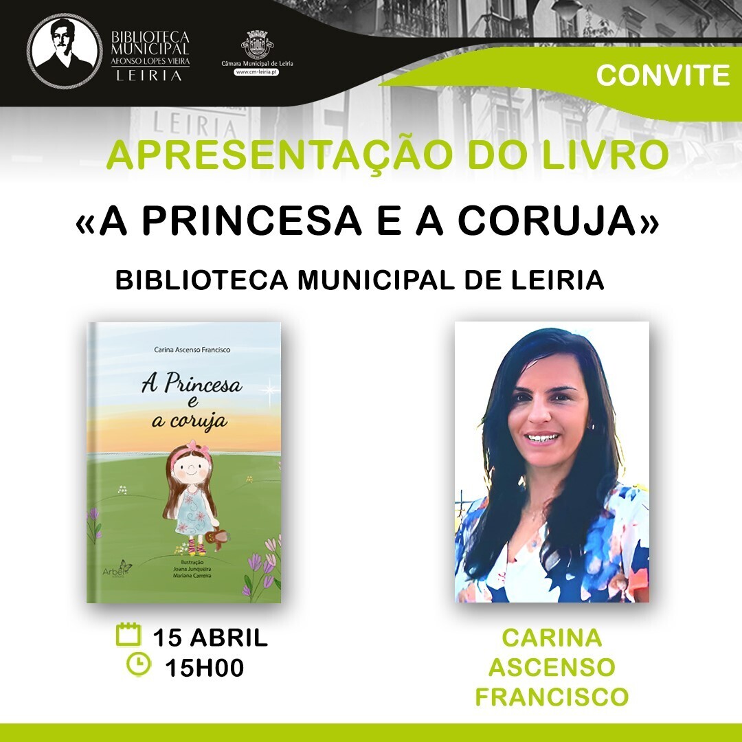 "A Princesa e a coruja" é o livro infantil de Carina Ascenso Francisco, que será apresentado pela autora, no dia 15 de abril, às 15 horas, na Biblioteca Municipal Afonso Lopes Vieira, em Leiria.