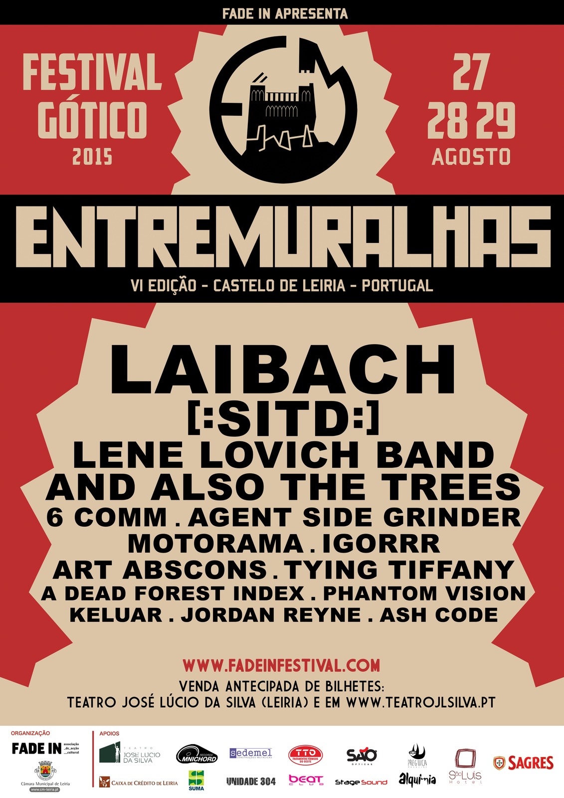 Nos dias 27, 28 e 29 de agosto, o Castelo de Leiria recebe a sexta edição do Festival Gótico ENTREMURALHAS, durante o qual vão atuar 15 bandas, sete das quais em estreia absoluta, ao vivo, em Portugal.