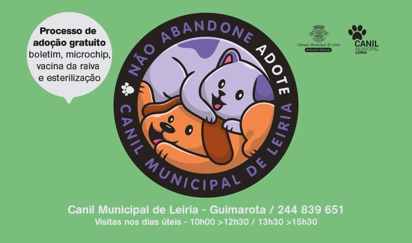 O Município de Leiria apela aos interessados em adotar um amigo, para que visitem o Canil Municipal, que está aberto nos dias úteis, das 9h30 às 12 horas e das 13h30 até às 15h30.