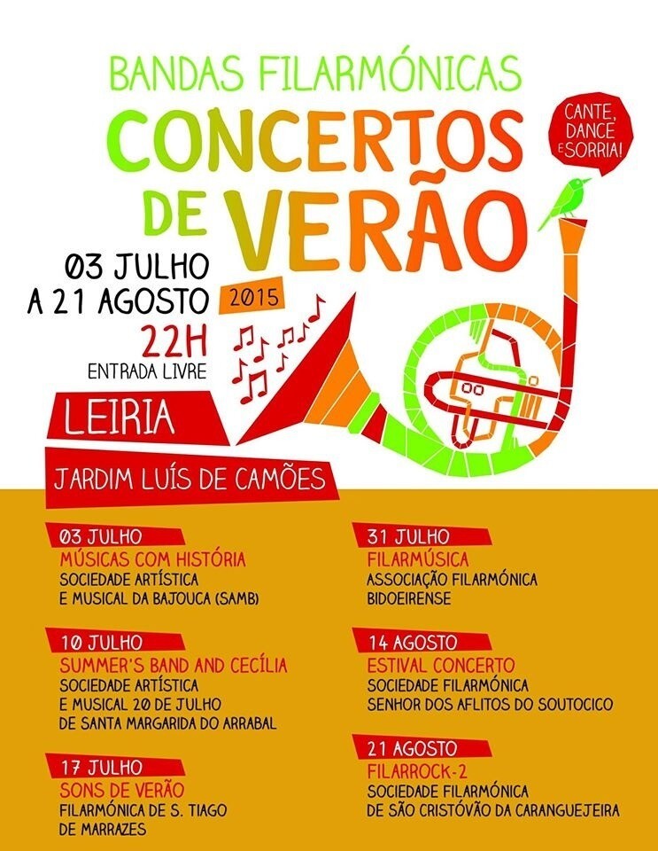 Os Concertos de Verão regressam a Leiria e vão animar as noites de sexta-feira, até dia 21 de agosto, numa iniciativa do Município de Leiria em conjunto com as Filarmónicas do concelho.