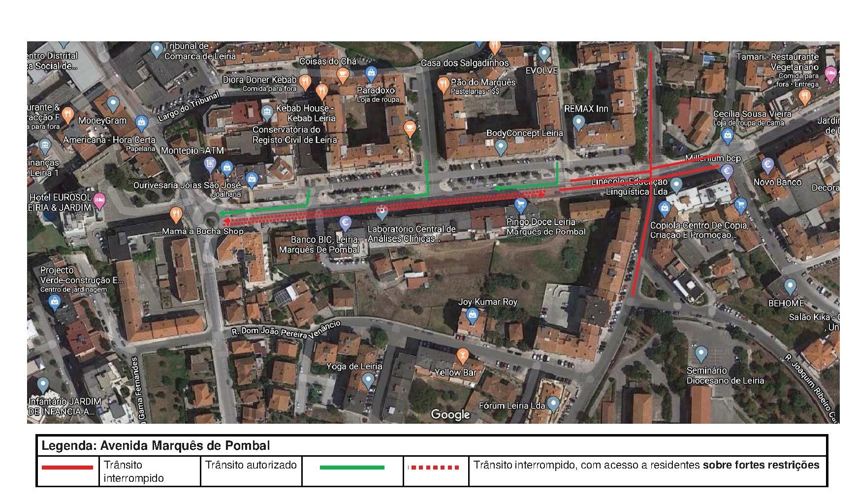 No âmbito da empreitada “Sistema Viário da Avenida Nossa Senhora de Fátima e Avenida General Humberto Delgado”, informa-se que no próximo dia 27 de julho entre as 09h00 e as 17h00, será necessário proceder ao corte de trânsito da avenida Marquês de Pombal, sentido descendente, no troço compreendido entre a rotunda Poente (Rotunda do Eurosol) e o cruzamento da rua Francisco Pereira da Silva / rua da Restauração, ficando suspensas as condições de inversão de marcha no final do troço.