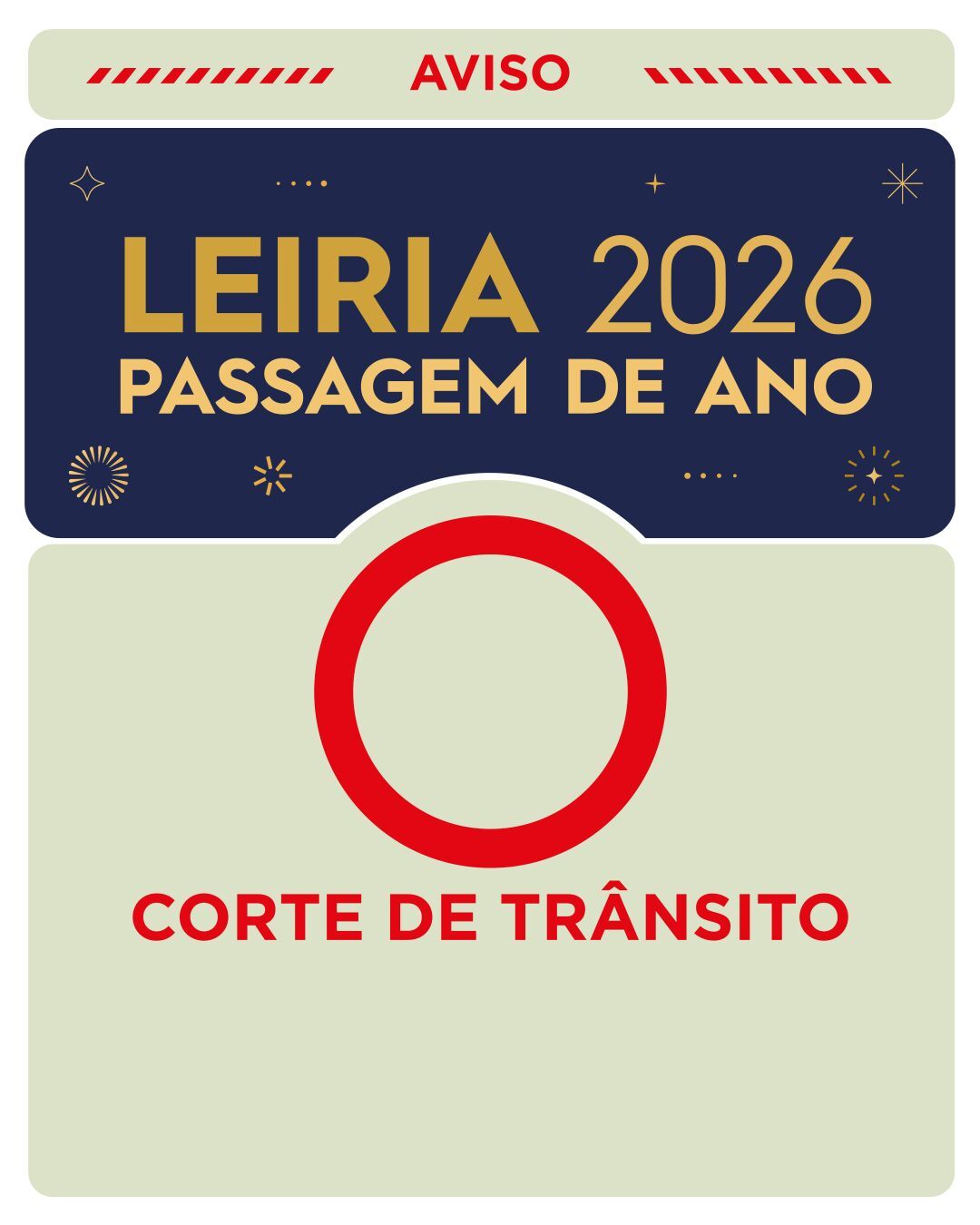 No âmbito da realização das festividades da Passagem de Ano 2025/2026, será necessário condicionar e cortar a circulação temporária de trânsito, nos seguintes dias e horários: