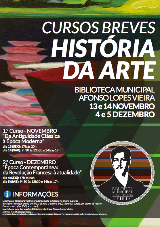 Na sequência do êxito alcançado na primeira edição, a Biblioteca Municipal Afonso Lopes Vieira (BMALV) em Leiria, realiza nos meses de novembro e dezembro de 2015, dois cursos livres de História da Arte, ministrados pela Professora Doutora Tânia Saraiva, historiadora da arte e docente do ensino superior.