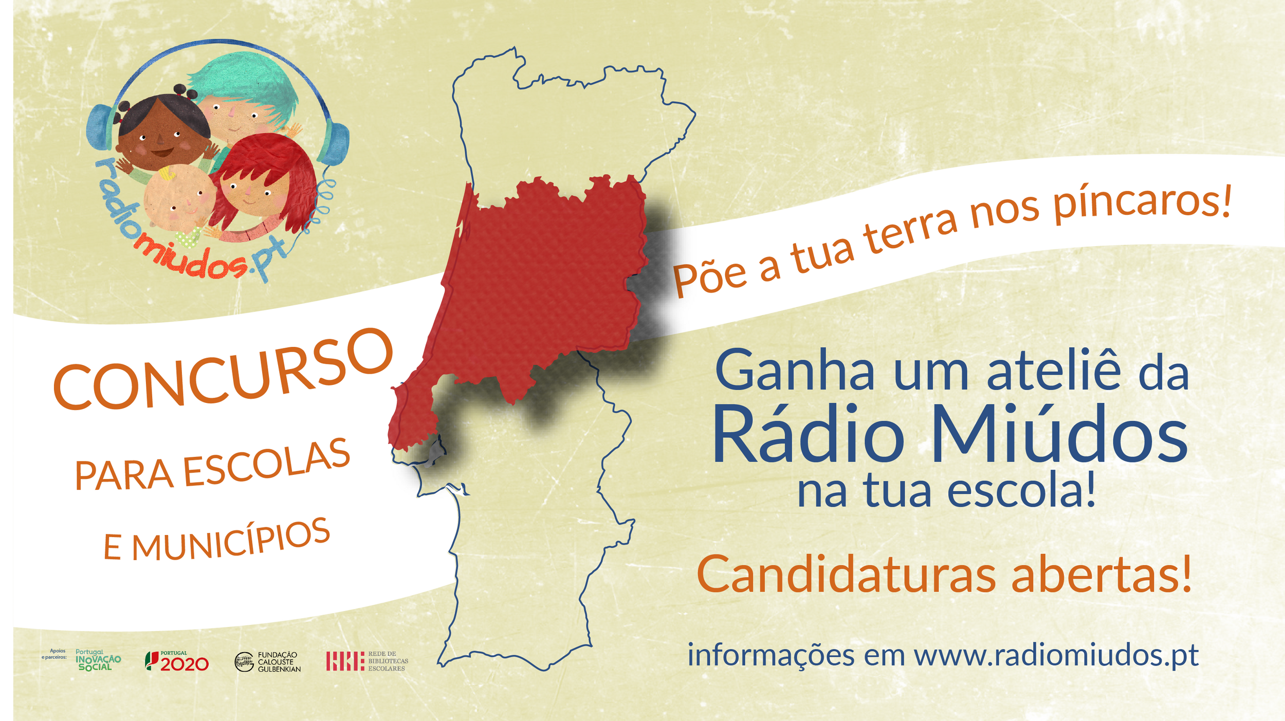 O concurso, organizado pela Rádio Miúdos, tem a colaboração da Rede de Bibliotecas Escolares e o apoio de “Portugal Inovação Social”, no âmbito do Portugal 2020, e da Fundação Calouste Gulbenkian.
