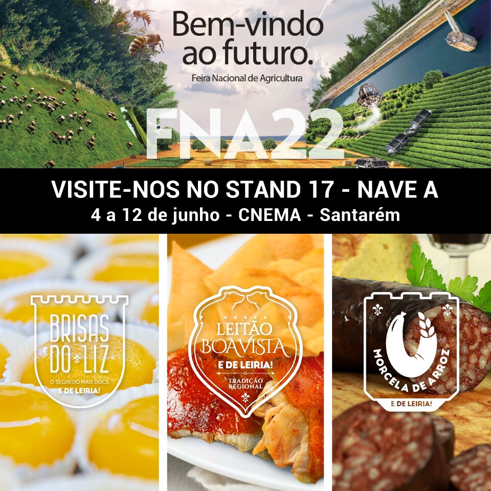 De 4 a 12 de junho, os produtos É DE LEIRIA! vão estar representados na FNA’22 – Feira Nacional de Agricultura de Santarém, num stand assente numa dinâmica de degustação e com um ambiente visual que nos transporte até Leiria, com o Castelo em grande destaque.