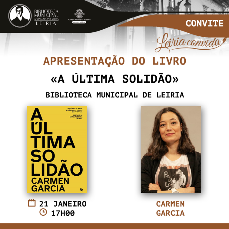 O livro “A última solidão”, da escritora Carmen Garcia, dá o mote à conversa do próximo Leiria Convida, que se realiza dia 21 de janeiro, às 17 horas, na Biblioteca Municipal Afonso Lopes Vieira, em Leiria, e no qual a escritora irá falar sobre o seu livro.