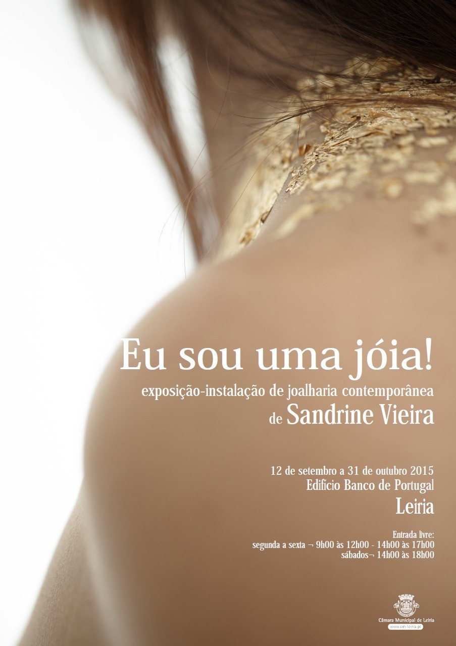 A artista plástica Sandrine Vieira apresenta “Eu sou uma jóia – exposição-instalação de joalharia contemporânea”, entre 12 de setembro e 31 de outubro, no Edifício Banco de Portugal, em Leiria.
