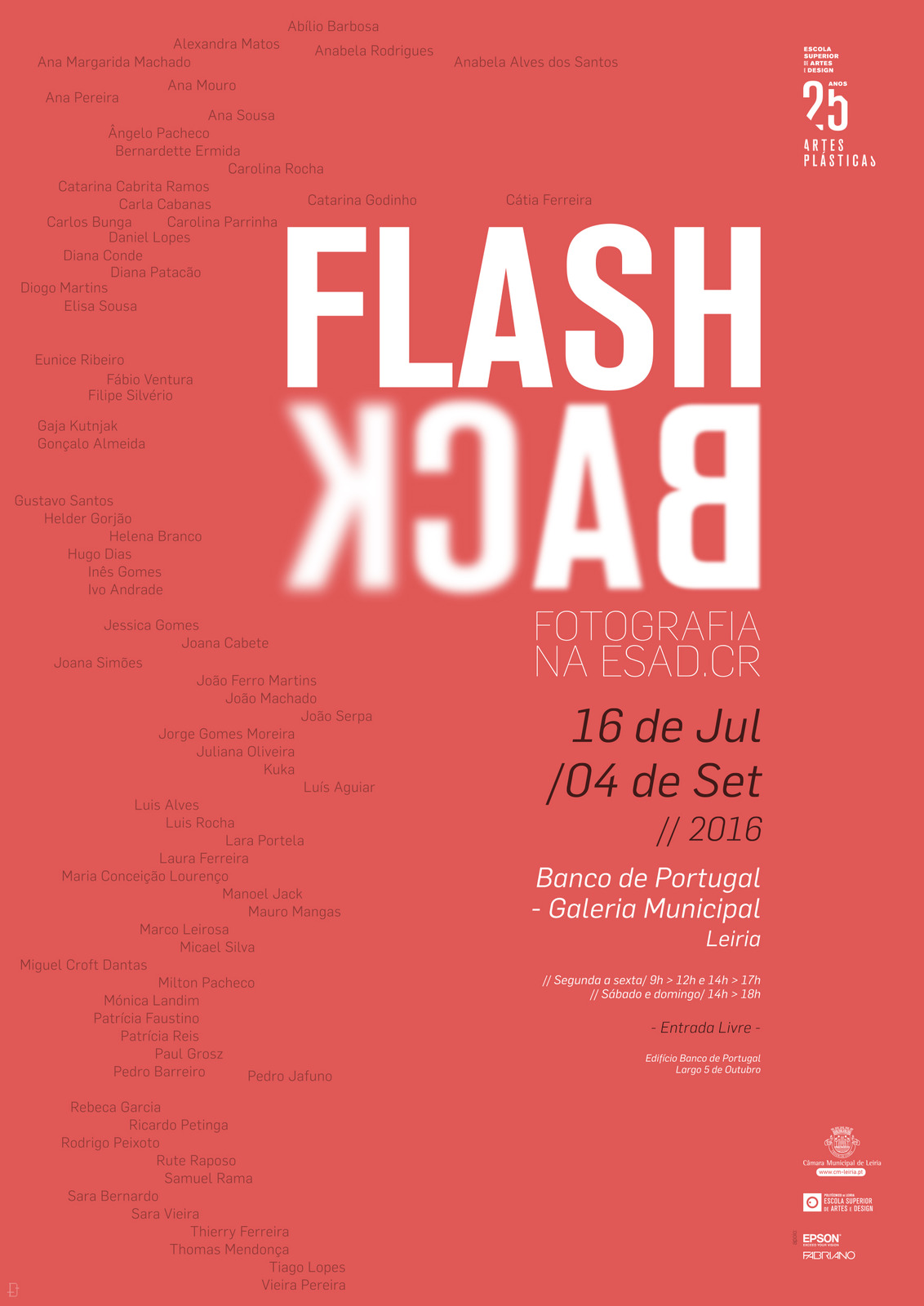 Flashback é a exposição de fotografia da Escola Superior de Artes e Design das Caldas da Rainha (ESAD), que vai estar patente na galeria do edifício do Banco de Portugal, em Leiria, entre os dias 16 de julho e 04 de setembro, assinalando desta forma os 25 anos daquela escola do Instituto Politécnico de Leiria (IPL).