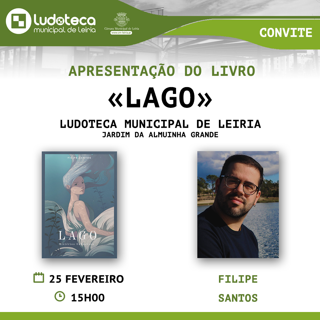 “Lago”, livro da autoria de Filipe Santos, será apresentado pelo autor, no dia 25 de fevereiro, às 15 horas, na Ludoteca Municipal de Leiria, no Jardim da Almuinha Grande.