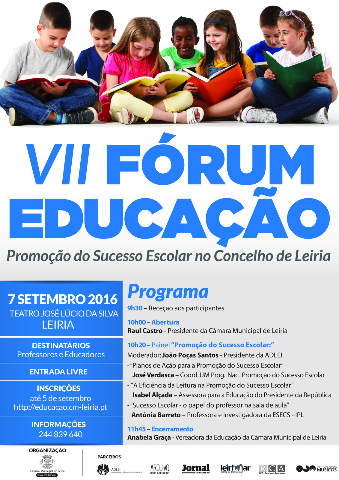 A promoção do sucesso escolar no concelho de Leiria é o tema da edição deste ano do Fórum Educação, que se realiza dia 7 de setembro no Teatro José Lúcio da Silva, dirigido a professores e educadores.