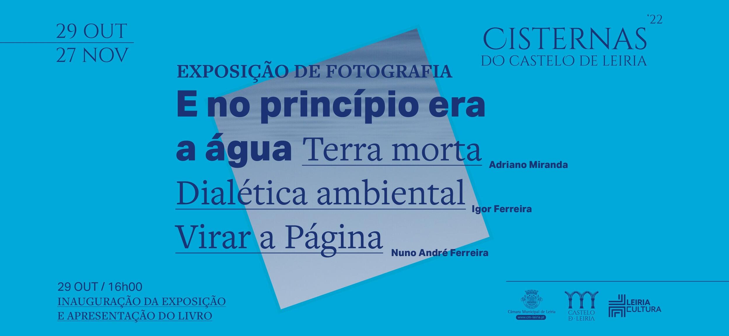 O Castelo de Leiria recebe no espaço Cisternas, a partir do dia 29 de outubro, às 16 horas, e até 27 de novembro, a exposição “E no princípio era a água”, que surge a partir do livro com o mesmo nome, e juntou três fotojornalistas portugueses que se propõem, através do seu trabalho documental, mostrar a dialética ambiental a que o mundo assiste.