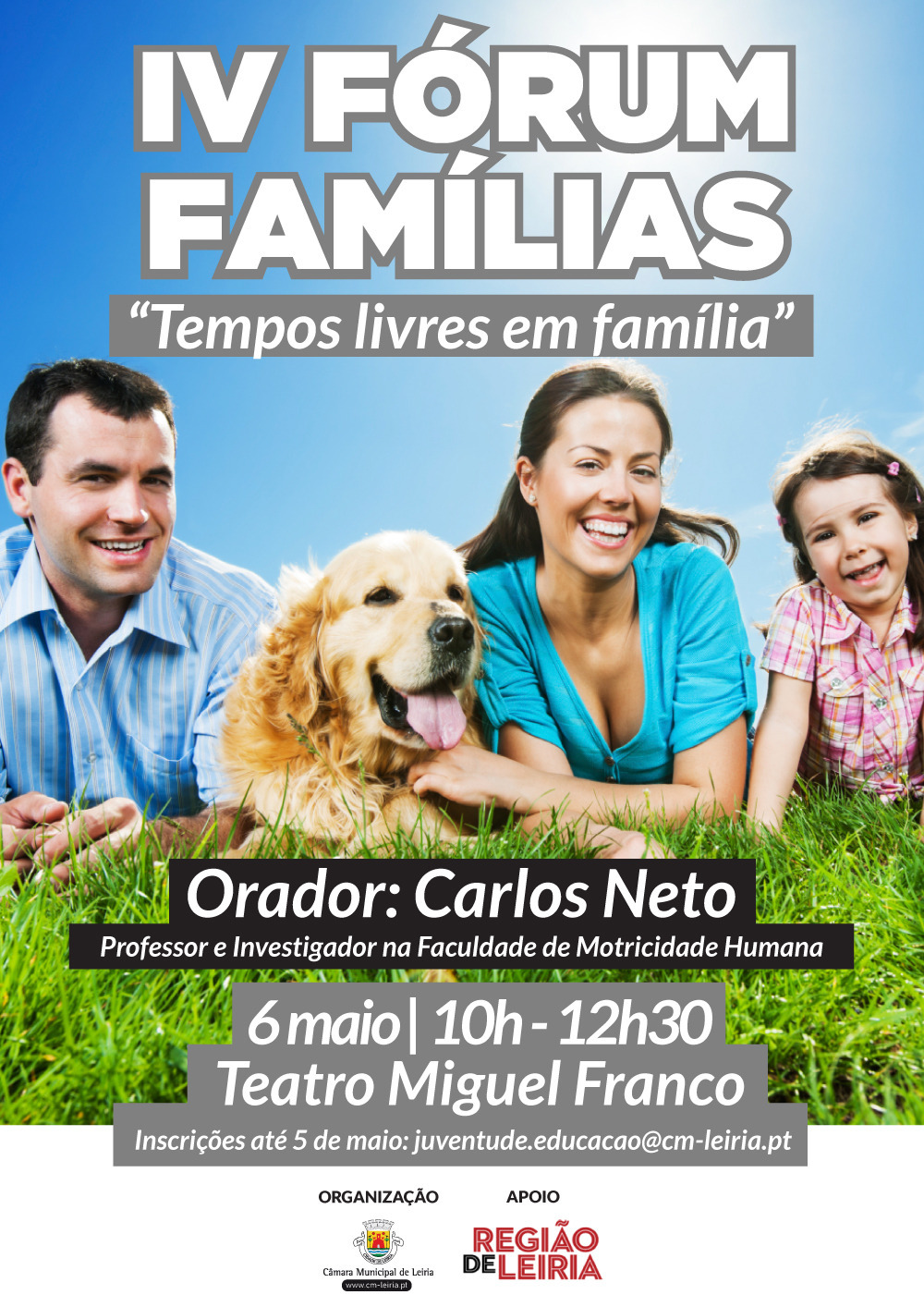 “Tempos livres em família” vai ser o tema do IV Fórum Famílias, que vai decorrer dia 6 de maio, a partir das 10:00, no Teatro Miguel Franco, em Leiria, tendo como orador convidado Carlos Neto, professor e investigador em Motricidade Humana, que tem vindo a alertar a sociedade para os riscos da falta de exercício físico e sedentarismo das crianças.