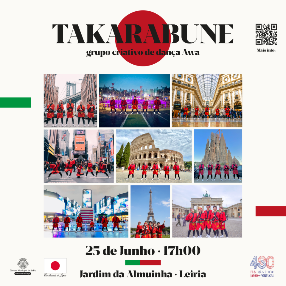 A Takarabune, conceituada companhia de dança criativa japonesa, apresenta no próximo domingo, dia 25 de junho, às 17 horas, no Jardim da Almuinha, um espetáculo único de dança criativa Awa Odori - uma das mais conhecidas danças tradicionais japonesas, com 450 anos de história.