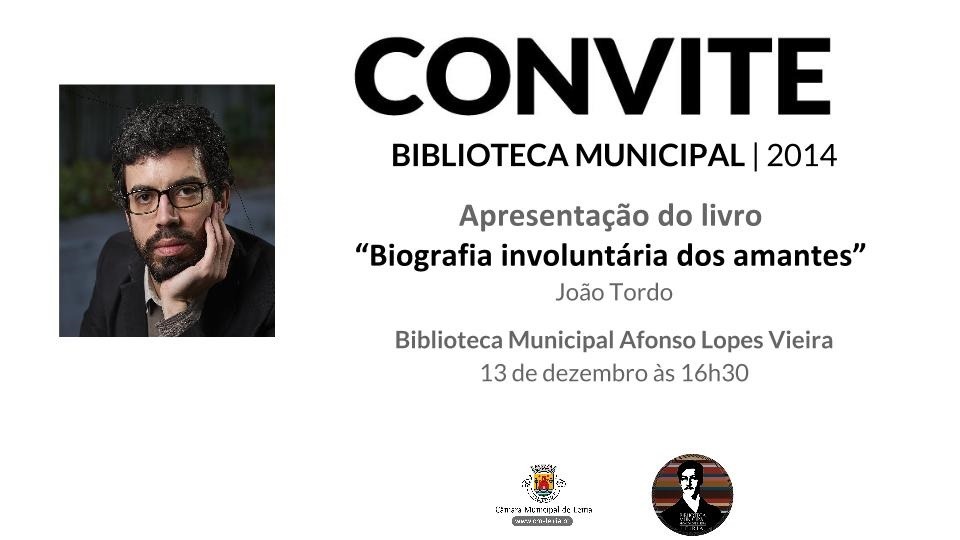 O vencedor do Prémio Jovens Criadores na categoria de Literatura, em 2001, Prémio Literário José Saramago, em 2008 e Man of the Year, na categoria Literatura, em 2014, pela revista "GQ, João Tordo, marcará presença na Biblioteca Municipal Afonso Lopes Vieira, em Leiria, no dia 13 de dezembro, pelas 16h30.