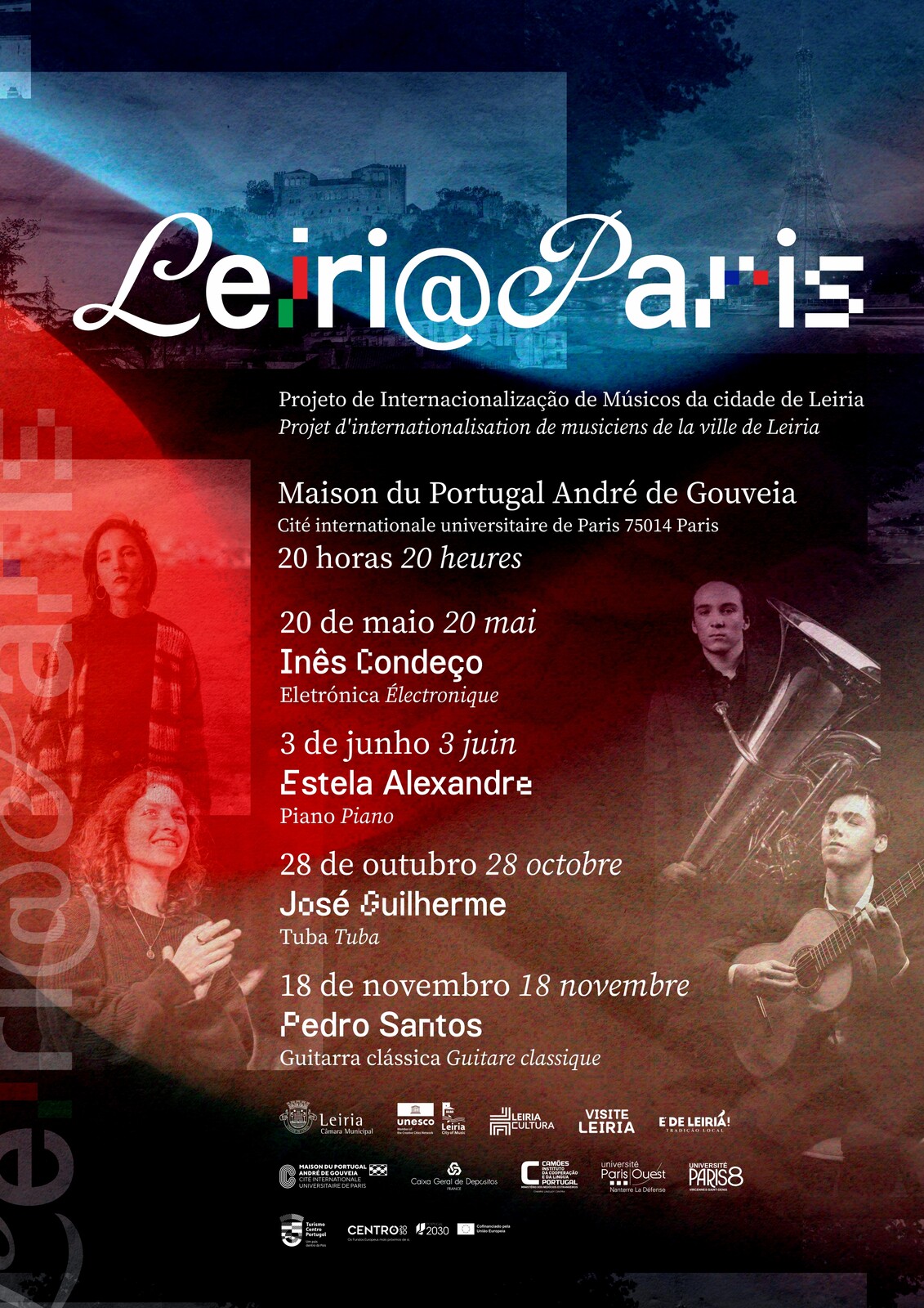 A criatividade musical de Leiria ruma a Paris com o projeto Leiri@Paris – Projeto de Internacionalização de Músicos da Cidade de Leiria, uma iniciativa que arranca com quatro artistas leirienses na prestigiada Casa de Portugal “André de Gouveia”, situada na Cidade Internacional Universitária de Paris.