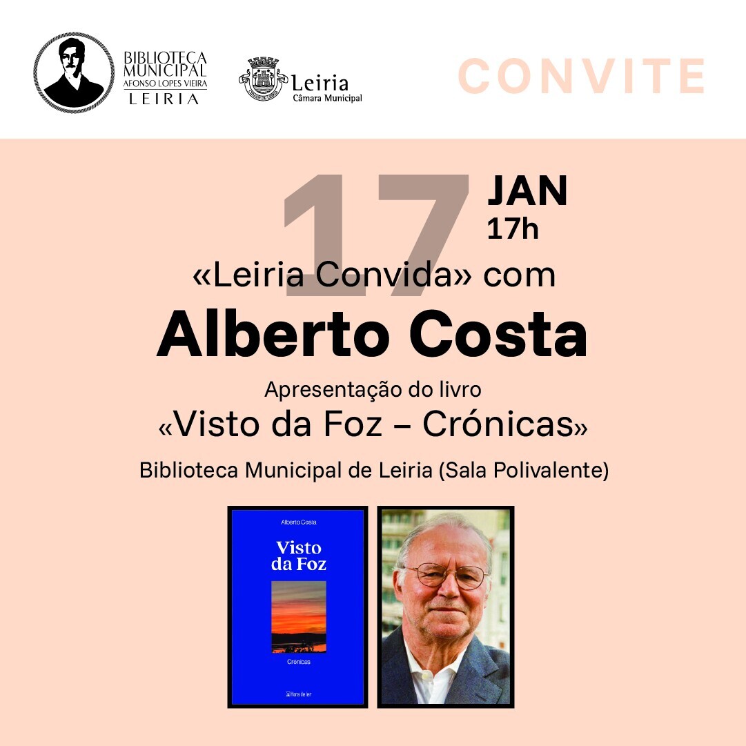 A Biblioteca Municipal Afonso Lopes Vieira, em Leiria, promove no próximo dia 17 de janeiro, às 17h00, mais uma sessão do ciclo Leiria Convida, tendo como convidado Alberto Costa, que apresentará o seu mais recente livro, Visto da Foz – Crónicas.