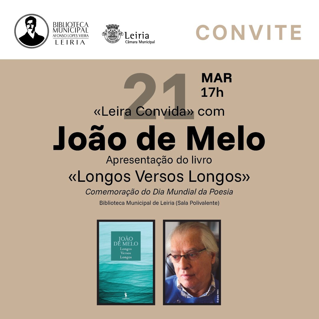 No âmbito das comemorações do Dia Mundial da Poesia, a Biblioteca Municipal Afonso Lopes Vieira, em Leiria, recebe o escritor João de Melo para mais uma sessão do ciclo Leiria Convida, no próximo dia 21 de março, às 17h00.