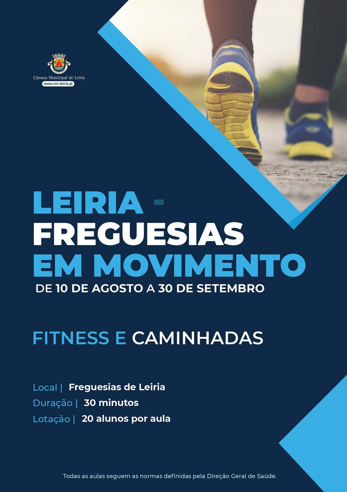 O programa prevê um conjunto de aulas de fitness e caminhadas realizadas ao ar livre, desenvolvidas entre o dia 10 de agosto e o dia 30 de setembro de 2020, no período de segunda a sexta-feira, entre as 9:00 e as 21:00, em todas as freguesias de Leiria.
