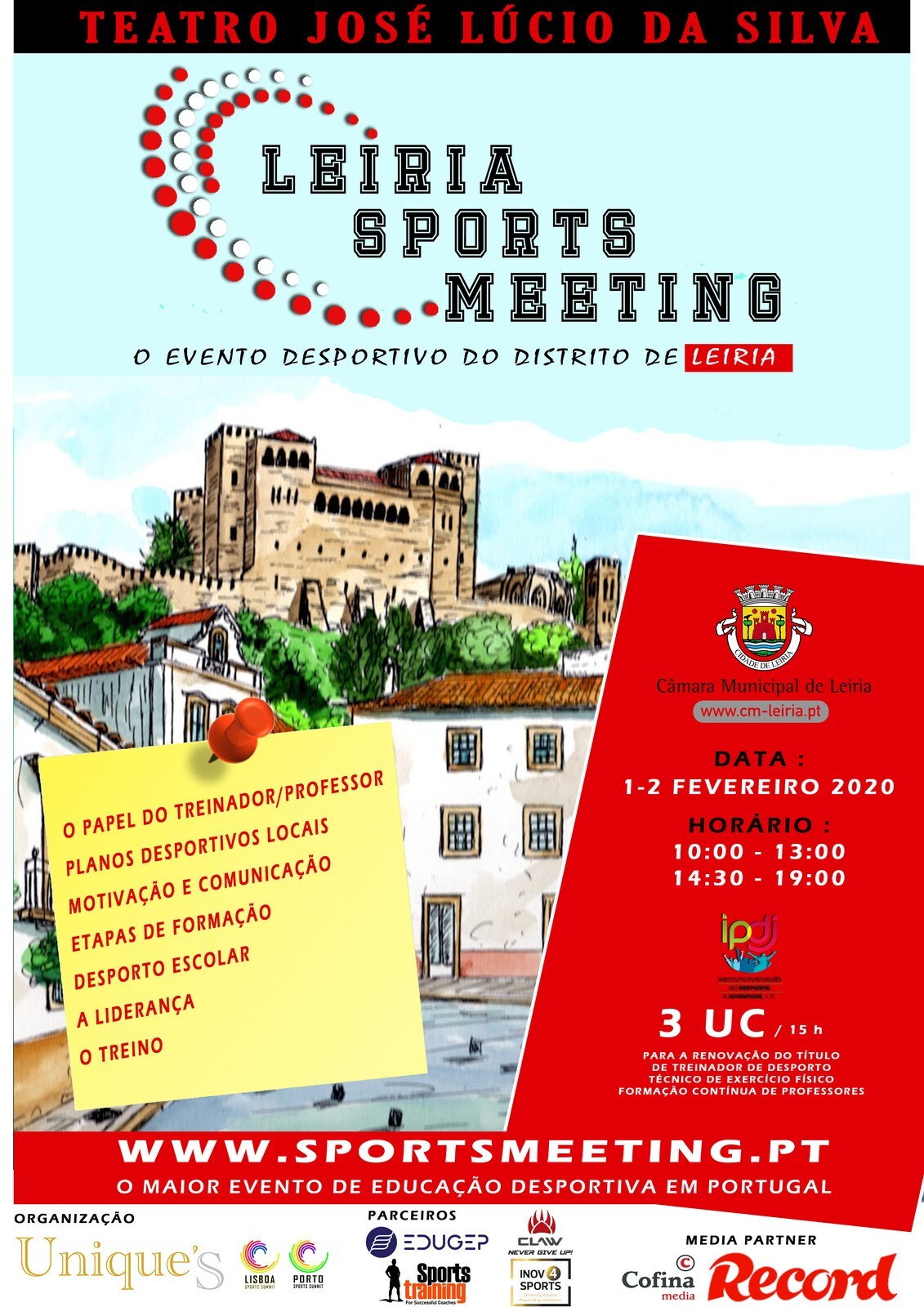 A educação desportiva é o tema central do Leiria Sports Meeting, um evento que se realizará nos dias 1 e 2 de fevereiro de 2020, no Teatro José Lúcio da Silva.