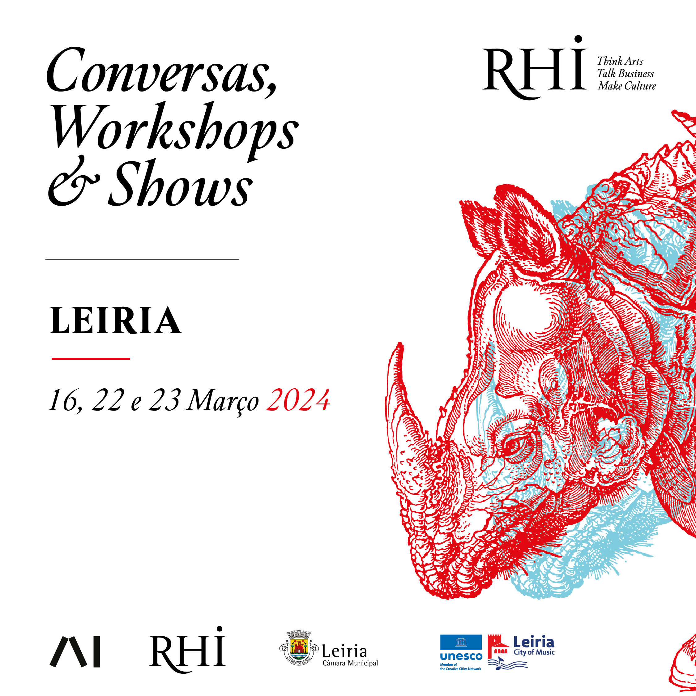 Numa parceria do Município com o Arte Institute, Leiria recebe, nos dias 16, 22 e 23 de março, alguns dos mais reputados programadores culturais, no âmbito da sexta edição do RHI - Revolution Hope Imagination www.rhi-think.com .
