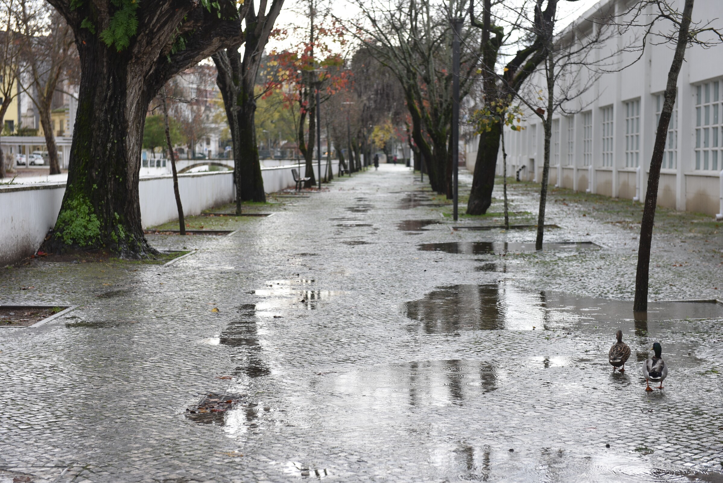 A Escola Básica de D. Dinis, em Leiria, sofreu algumas inundações, que, não estando relacionadas com as obras em curso no estabelecimento de ensino, não impediram o seu normal funcionamento.