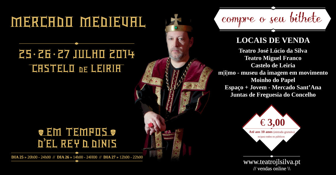 Antes, de 21 a 25 de julho, temos um passatempo no facebook do município de Leiria, no qual oferecemos 10 bilhetes por dia para o Mercado Medieval. Se ficar no top cinco das frases com mais gostos, ganha dois ingressos. Nesses cinco dias, as pessoas são desafiadas a escrever uma frase sobre o património natural, cultural e turístico do concelho de Leiria numa publicação que termina às 00:00 de cada um dos dias. Na segunda-feira, a frase terá de ser dedicada ao castelo de Leira. Na terça-feira, a Monte Real. No dia seguinte, à praia do Pedrógão. Na quinta-feira, à Lagoa da Ervedeira. Na sexta, ao Vale do Lapedo. Os vencedores poderão, depois, levantra os respetivos ingressos num dos dias do evento no m|i|mo - museu da imagem em movimento, perto do castelo de Leiria.