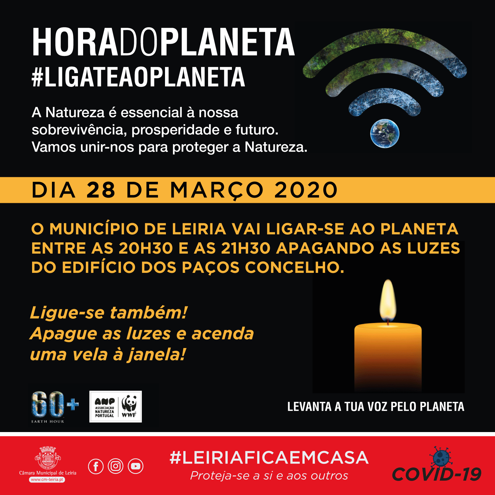 O Município de Leiria vai juntar-se à Hora do Planeta, no próximo sábado, entre as 20:30 e as 21:30, numa iniciativa que, desde 2007, procura envolver a população mundial num movimento global contra as alterações climáticas.