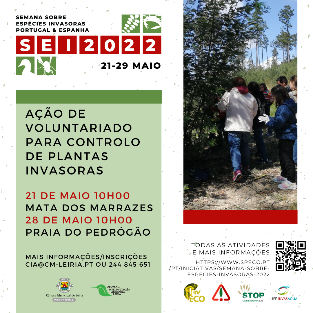 O Município de Leiria vai dinamizar, entre os próximos dias 21 e 28 de maio, várias atividades dedicadas à Sensibilização e Controlo de Espécies de Plantas Invasoras, uma iniciativa integrada na SEI 2022 – Semana Sobre Espécies Invasoras, Portugal & Espanha, um projeto ibérico promovido em Portugal pela Rede InvECO – Rede Portuguesa de Estudo e Gestão de Espécies Invasoras, associada à SPECO, pela Plataforma INVASORAS.PT e pelos projetos ibéricos LIFE STOP Cortaderia e LIFE INVASAQUA.