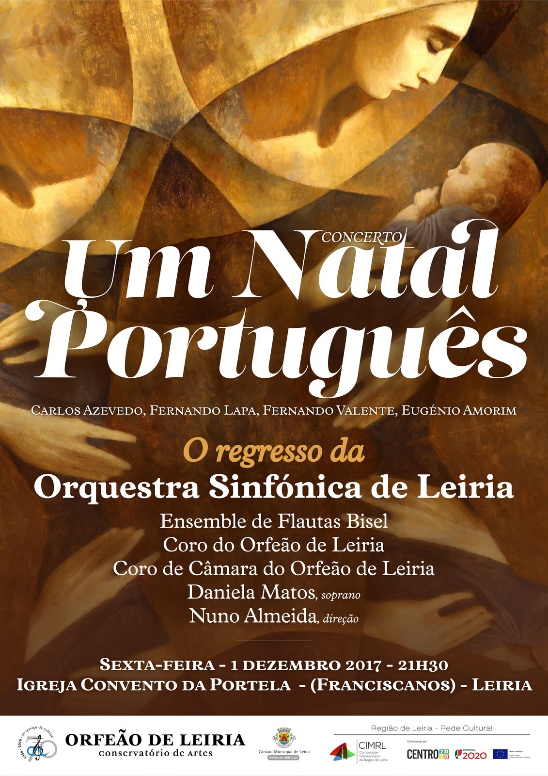No dia 01 de dezembro, o Orfeão de Leiria – Conservatório de Artes apresenta pelas 21:30, na Igreja Convento da Portela [Franciscanos], o Concerto “Um Natal Português”, com a participação de Carlos Azevedo, Fernanda Lapa, Fernando Valente, Eugénio Amorim, Orquestra Sinfónica de Leiria, Ensemble de Flautas Bisel, Coro do Orfeão de Leiria, Soprano Daniela Matos e direção de Nuno Almeida.