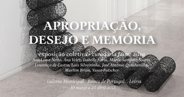 "Apropriação, Desejo e Memoria”, é uma exposição com Curadoria de Jaime Silva da Sociedade Nacional das Belas Artes, que vai estar patente ao público entre os dias 10 de março e 25 de abril, na Galeria Municipal Banco de Portugal, em Leiria.