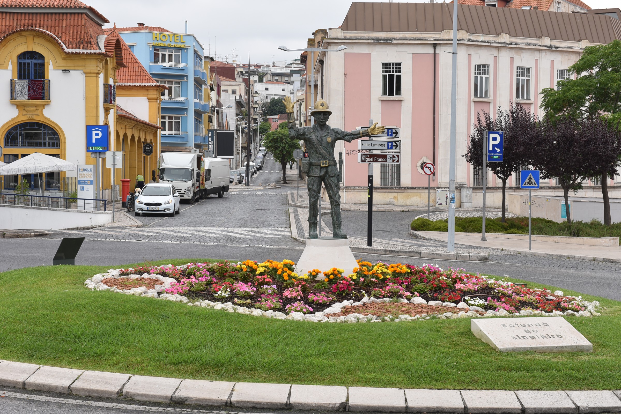 - Para aceder à Rotunda do Sinaleiro, os condutores que cheguem à Rotunda Eng. Rui Silveirinha deverão seguir em direção à Rua Carolina Ferreira Ribeiro, seguindo pela Rua Fábrica do Papel, Largo Infantaria n.º 7, Avenida Marquês de Pombal, Rua do Município, Largo da República, Rua dos Mártires, Rua de Alcobaça e Avenida Combatentes da Grande Guerra.