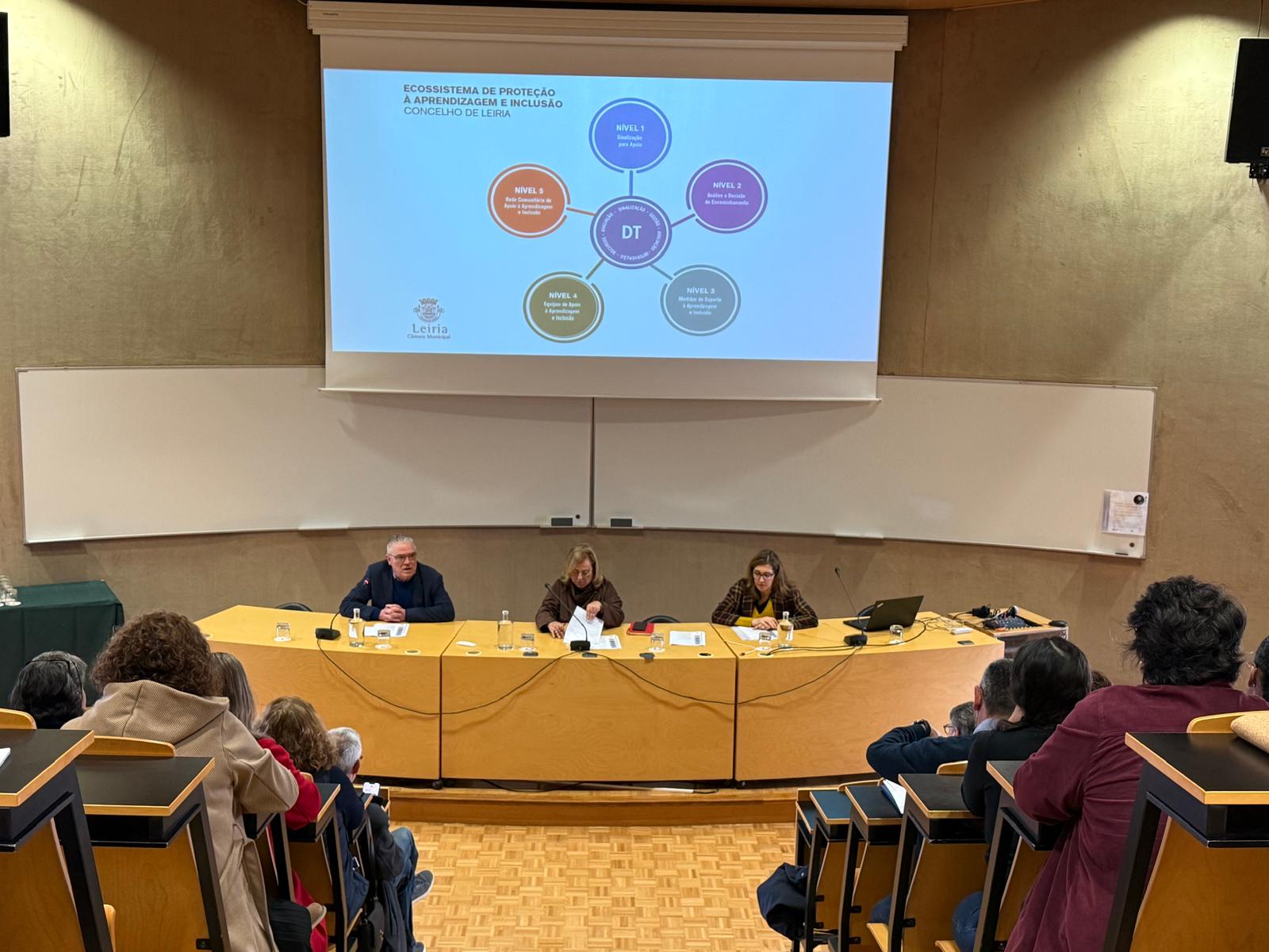 O encontro contou com em três painéis temáticos em que se refletiu sobre os diferentes níveis de resposta do Ecossistema de Promoção da Aprendizagem e Inclusão (EPAI), destacando a atuação dos Diretores de Escola e das equipas EMAEI, das Equipas de Apoio à Aprendizagem e Inclusão, bem como a intervenção da Rede Comunitária de Apoio, que integra parceiros como a CPCJ de Leiria, a equipa de saúde mental da infância e adolescência do Centro Hospitalar de Leiria, o projeto PIPSE, a associação Global Diáspora, a iniciativa Redes na Escola – Dá o Salto!, entre outras.