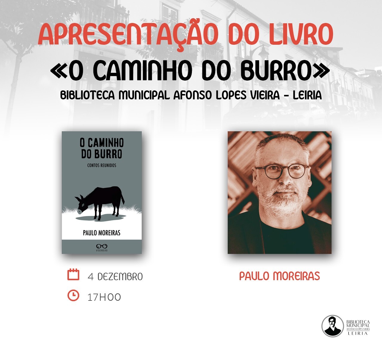 O novo livro de Paulo Moreiras, “O Caminho do Burro”, será apresentado no próximo dia 4 de dezembro, pelas 17h00, na Biblioteca Municipal de Leiria, com a presença do autor e de Luís Mourão.